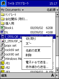 ファイルエクスプローラを使って、ファイルのコピー/削除やフォルダの作成など、ファイル/フォルダへの各種基本操作を行うことができるようになりました。赤外線通信によるファイルの送受信も可能です。 |