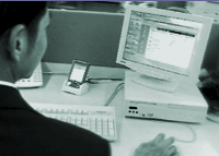ActiveSyncをインストールしたパソコンとCASSIPOEIAを接続すれば、ActiveSyncは自動的にCASSIOPEIAを検知します。あなたが常日頃使っているパソコンと、あなたのCASSIOPEIAとの間でひとたび「パートナー関係」を設定すれば、あとは接続を行うだけで、各種のデータの同期が行われるようになります。 |